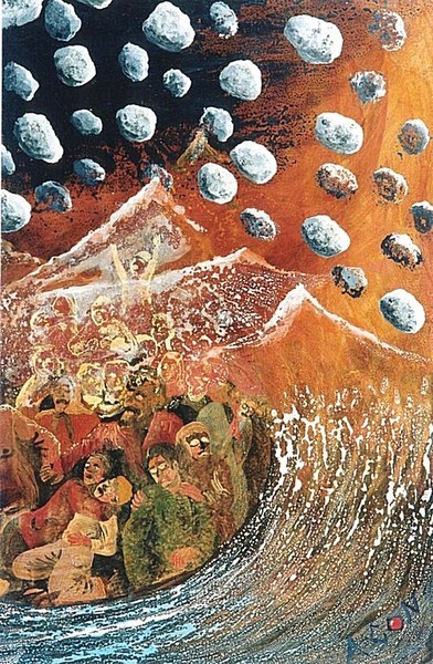 „Was nützt euch euer Reichtum, wenn euch demnächst die Luft zum Atmen fehlt“? Ihr selbst habt es so weit gebracht, dass ein paar Atemzüge tödlich wirken. Zwei große Seuchen werden kommen – eine von der Erde ausgehend, die andere vom Kosmos aus. Ihr Diener der großen Babylon, rühmt euch nicht in euerm Übermut des Wohlstandes.
