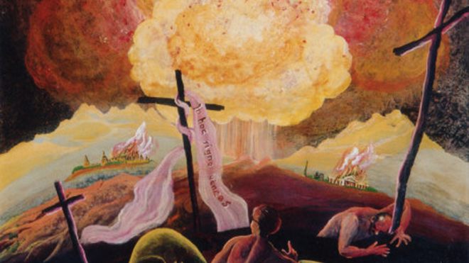 Macht euere Soldaten zu Samaritern! Bezahlt sie, wie ihr euch selbst entlohnt und lasset sie in den Spitälern dienen. Seid zu den Untertanen gerecht, so wird euch der Herr gnädig sein. Vernichtet eure todbringenden Waffen und macht sie zu Pflugscharen. Macht es, ehe euere an Feindesland gelieferten Waffen euch selbst vernichten. Nur mit dem Inhalt desTopfs des Kriegsministers kann man eine bessere Welt bauen! Ihr wisset, daß man Wüsten urbar machen kann und daß niemand hungern muß! Warum, ihr Reichen, transportiert ihr eueren Überfluss nicht zu den Ärmsten der Welt und warum baut ihr ihnen keine Häuser? Macht die Erde grenzenfrei und befreit sie von den Schergen in Uniform und von den Entarteten in Menschengestalt. Ihr wisset, daß sie die Macht des Atoms besitzen und den millionenfachen Tod auch einsetzen werden! Ihr Verbrecherbanden in den Vorstandsetagen meines Vaterlandes: Ihr selbst ließet den atomaren Tod und die ausgerotteten Seuchen wieder herstellen und habt das "A-B-C" Arsenal an die terrorisierenden Staatsmächte geliefert. Luzifer reibt sich die Hände und freut sich, während der Gerechte leidet ob eueren Tun.