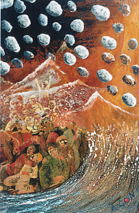 "Rechne nicht mit Jahreszahlen, rechne mit geschlossenen Kreisen. Auch eine Spirale besteht aus Kreisen", hat Er mich gelehrt. Ja, Herr. Jede Epoche und jedes Menschenalter, jede Ära und jedes platonische Jahr ist ein geschlossener Kreis. Jedes Miradenjahr ist ein Teil einer unendlichen Spirale. Nur der Gott der Trinität dehnt oder strafft diese Spirale, und alle anderen Götter sind Ihm untertan. Das bezeugt mein Blut. Das bezeugt das Erlöserblut von Golghata! Er nimmt uns an, wenn uns Gevatter Tod mit seinem überdimensionalem Daumen auf die Schulter drückt. An uns selbst liegt es, in welcher Art und Weise wir zum Gericht des Jüngsten Tages schreiten. Wahrlich, ich sage euch: Im Himmelreich sitzen wir auf keiner Wolke und spielen Harfe. Wir singen auch nicht Hosianna oder Halleluja! Um dies´ zu tun, sind wir auf Erden. Erde - unser Läuterungsplanet, aber auch unser Gerichtsplanet. Lest nach in dem Buch der guten Nachricht. Auf Erden können wir Menschen unser Fegefeuer zum Erlöschen bringen oder uns mit dem Brandmal Satans zeichnen! Auf Erden wird die Trennung vollzogen. Amen.