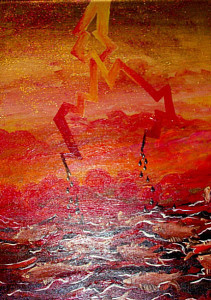 Auch die klerikalen Diener Petris verwerfen meine Zustandsbilder, da nicht sein darf, was ihrer Meinung nach nicht sein soll. Vielen Theologen der Urkirche vertraue ich mich an, Hilfe suchend und bittend. Die wenigen Geistlichen, die mit mir sprechen, weisen mich zurecht: "Die geheime Offenbarung (des Johannes) ist abgeschlossen - eine andere Offenbarung gibt es nicht!" Mit den Heiden und Okkultisten, mit denen ich über die Apokalypse und über die Erkenntnis sprechen will, lachen über mein Geschwätz und glauben ihren Hirngespinsten, nicht aber der Wahrheit. Dann habe ich noch die "Freien Christen" an meiner Seite, die überzeugt sind, daß ich von bösen Dämonen besessen bin und um meine "Erlösung" beten. Wie sonst könnte ich solche Wahnbilder malen und "antibiblisches" Zeug daherquasseln. Die Esoteriker erkennen in mir den Christ und meiden meine Nähe und meiner Gattin gefallen wiederum die Worte "Bibel" und Gott" nicht. Sie haut mir das "Scheißbuch" in einem Wutanfall auf den Schädel. Meine Kinder verbrennen meine Niederschriften und der Psychoanalytiker warnt mich deutlich: "Hören sie endlich auf, klüger sein zu wollen als die Gelehrten, sonst kommt ein neuer Schub...!" In diesem Morast menschlicher Dummheit zeigt mir Abba das letzte Zustandsbild auf. Alles gibt mir Gott zweimal, so auch das Schauen des letzten Tages der jetzigen Welt.